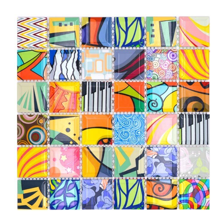 Les tesselles dans ce type de mosaïque sont en céramique. Comme elles sont cuites avec une fine couche d'émail vitrifié, ces tesselles sont un rien plus fragiles que celles en verre. C'est pourquoi certains carreaux de mosaïque en céramique ne sont pas appropriés pour une utilisation au sol. Il est donc préférable de vérifier ce critère avant d'acheter cette mosaïque.