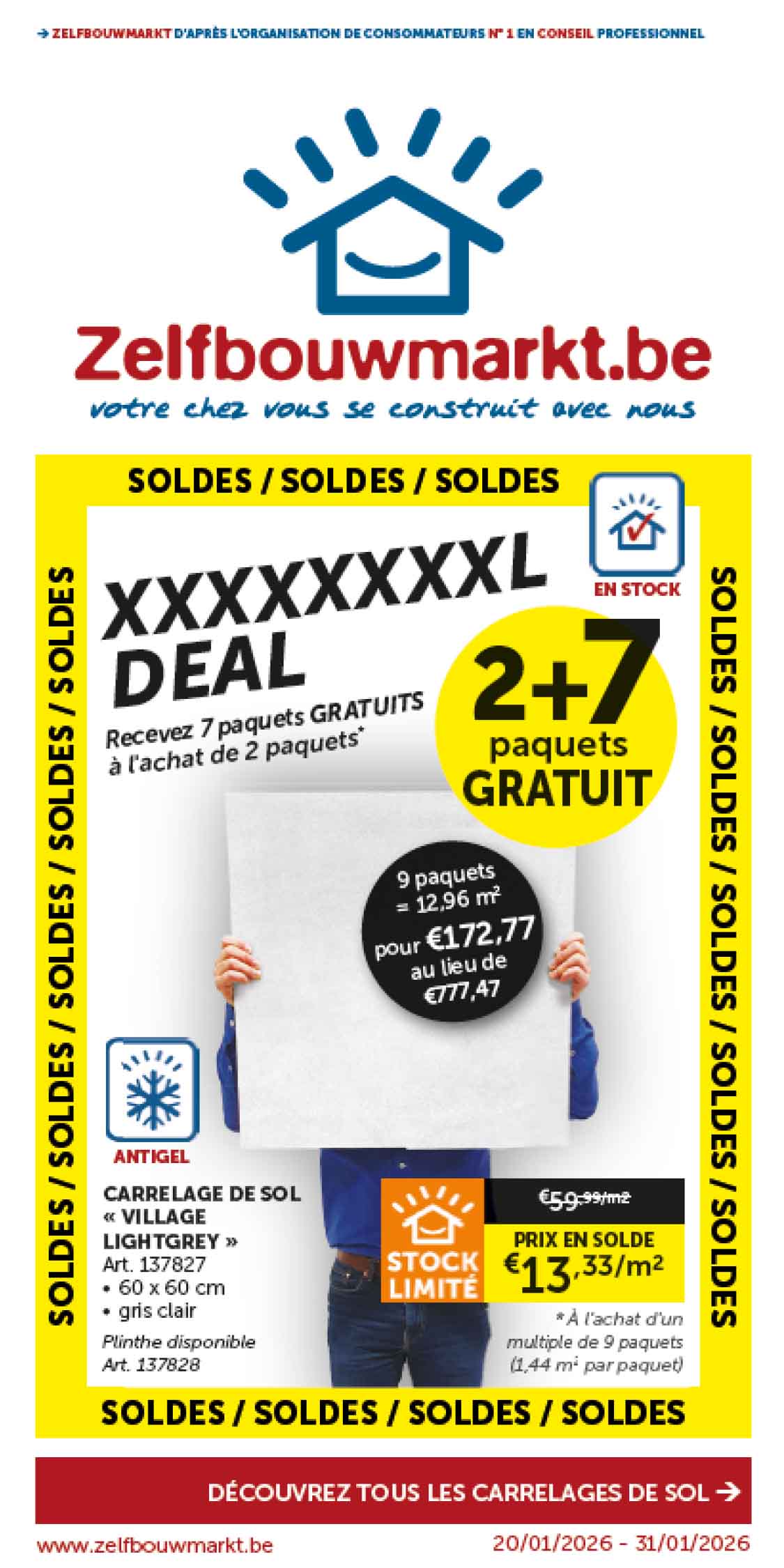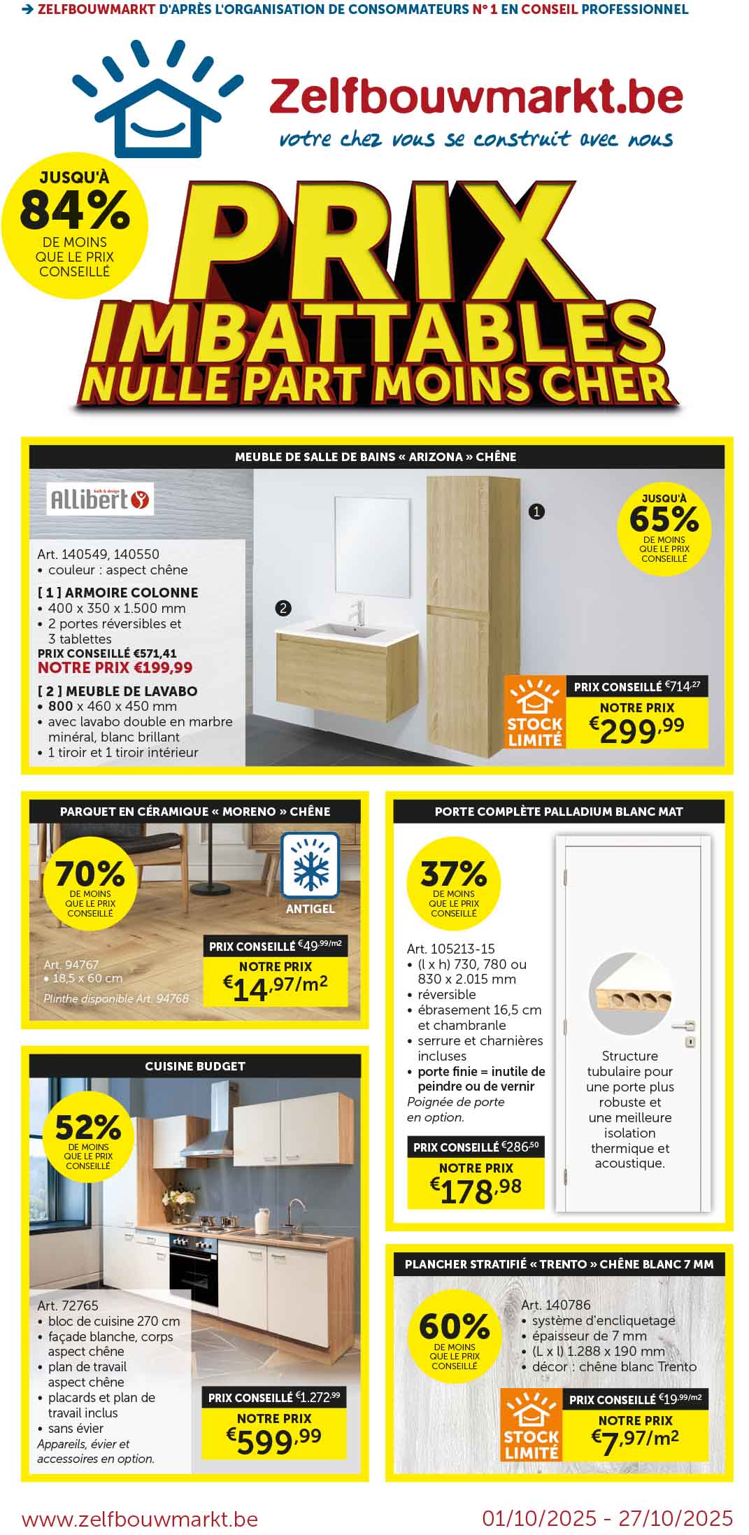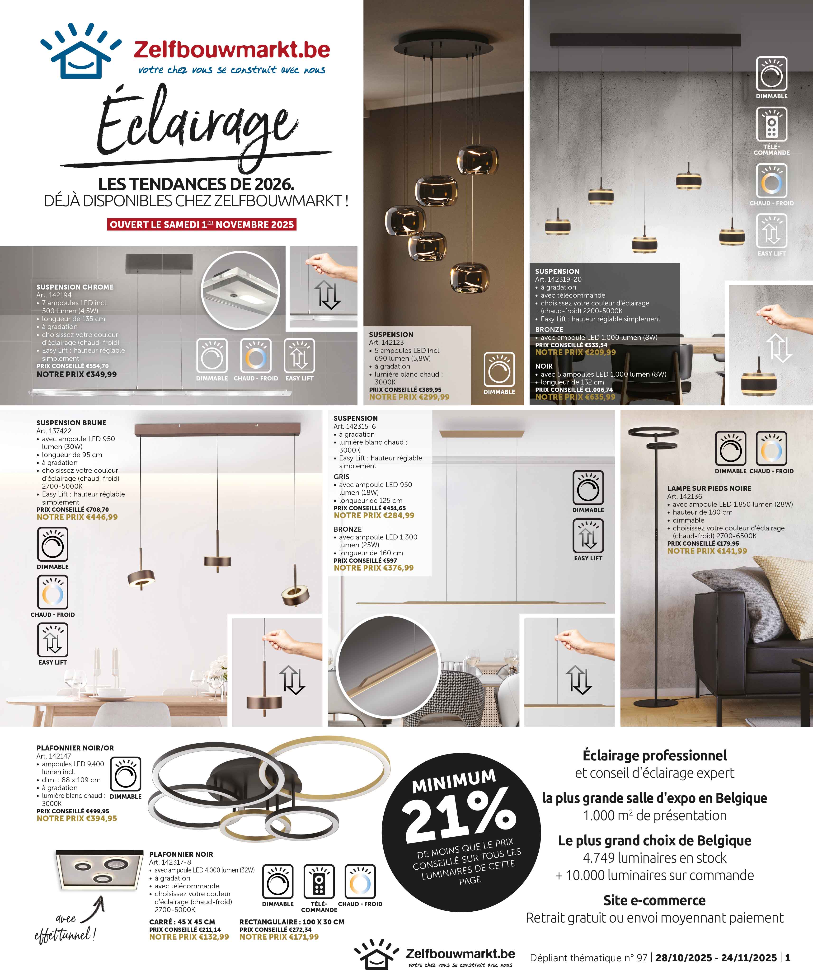 Découvrez les dernières dépliantes et restez informé de nos promotions actuelles, de nos remises saisonnières et de nos offres spéciales ! Vous trouverez ici tout ce dont vous avez besoin pour votre prochain projet de (re)construction. Feuilletez nos brochures et découvrez les meilleures offres sur toutes sortes de produits d'intérieur, meubles de salle de bain, portes intérieures, cuisines, carrelages, et bien plus encore.