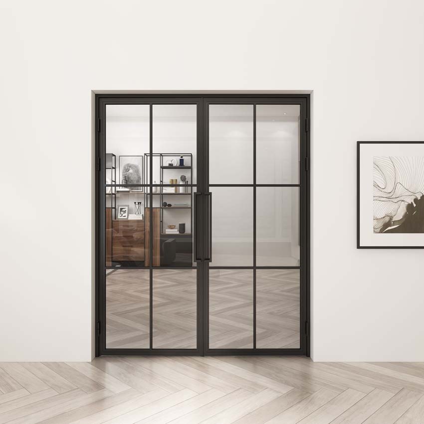 Le cadre et le verre minces font de cette double porte d'intérieur la solution idéale pour une maison moderne. Le verre transparent laisse passer beaucoup de lumière du jour et vous permet de profiter de la lumière du soleil dans la pièce adjacente dépourvue de fenêtres.