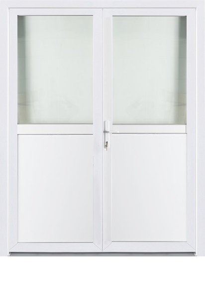 Buitendeur dubbel halfglas PVC mat glas wit rechtstrekkend naar buiten opendraaiend op maat