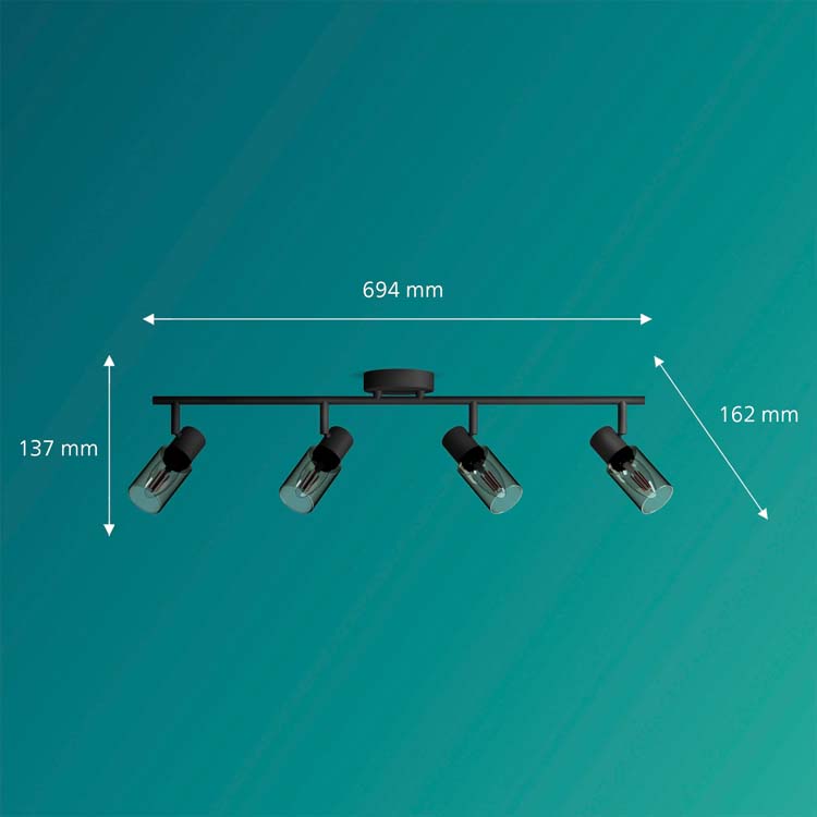 Met een lengte van 69,4 cm biedt deze plafondlamp voldoende verlichting zonder te overheersen. De lampen zijn richtbaar, zodat je het licht precies kunt richten waar je het nodig hebt. Perfect als je op een bepaalde plek wat meer licht wil voorzien. Je zet er als het ware iets mee in de “spotlight”. Of het nu gaat om een kunstwerk dat je wilt benadrukken of een hoek van de kamer die extra aandacht verdient, deze lamp biedt de ideale oplossing.