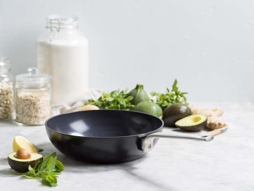 - Functionaliteiten: keramische antikleeflaag, PFAS vrij, ovenbestand tot 220 °C, ergonomische handgreep en lichtgewicht ontwerp