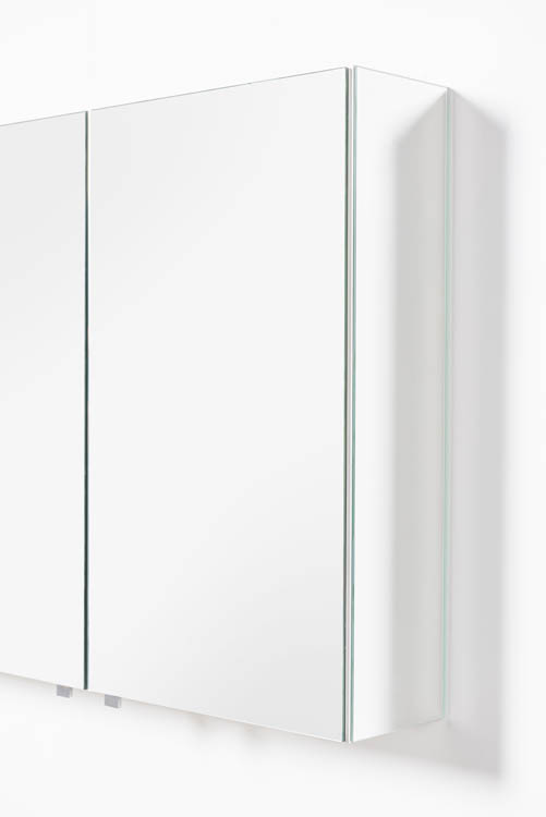 Heb je de kleine zwarte handgreepjes onderaan de deurtjes opgemerkt? Slim gezien van Mio Bagno, want zo hoef je geen vieze vingers meer op je spiegels te zetten om de kast te openen. Kuiswerk uitgespaard.